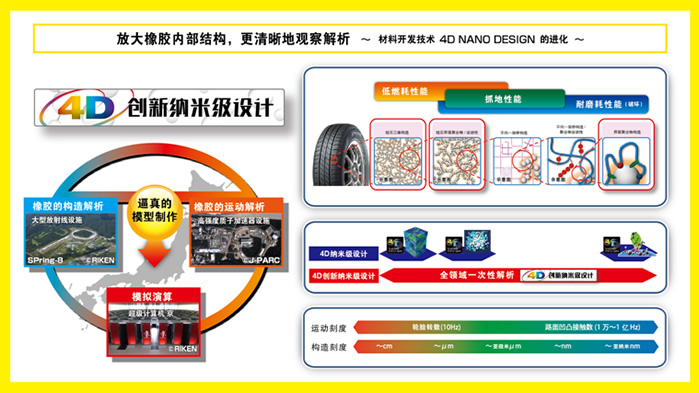 回顧?quán)嚨撈盏钠放瓢l(fā)展歷程,技術(shù)創(chuàng)新是出現(xiàn)頻率最高的關(guān)鍵詞。鄧祿普技術(shù)團(tuán)隊(duì)持續(xù)探索尖端科技,最新開發(fā)“4D創(chuàng)新納米級(jí)設(shè)計(jì)”技術(shù)運(yùn)用大型放射光設(shè)備“Spring-8”、高強(qiáng)度質(zhì)子加速器“J-PARC”和超級(jí)計(jì)算機(jī)“京”,從納米級(jí)微觀領(lǐng)域真實(shí)再現(xiàn)橡膠分子結(jié)構(gòu)及運(yùn)動(dòng)形態(tài),使原材料的開發(fā)精度和效率實(shí)現(xiàn)了質(zhì)的飛躍,全面提升了輪胎產(chǎn)品的低油耗性能、抓地力性能和耐磨耗性能。